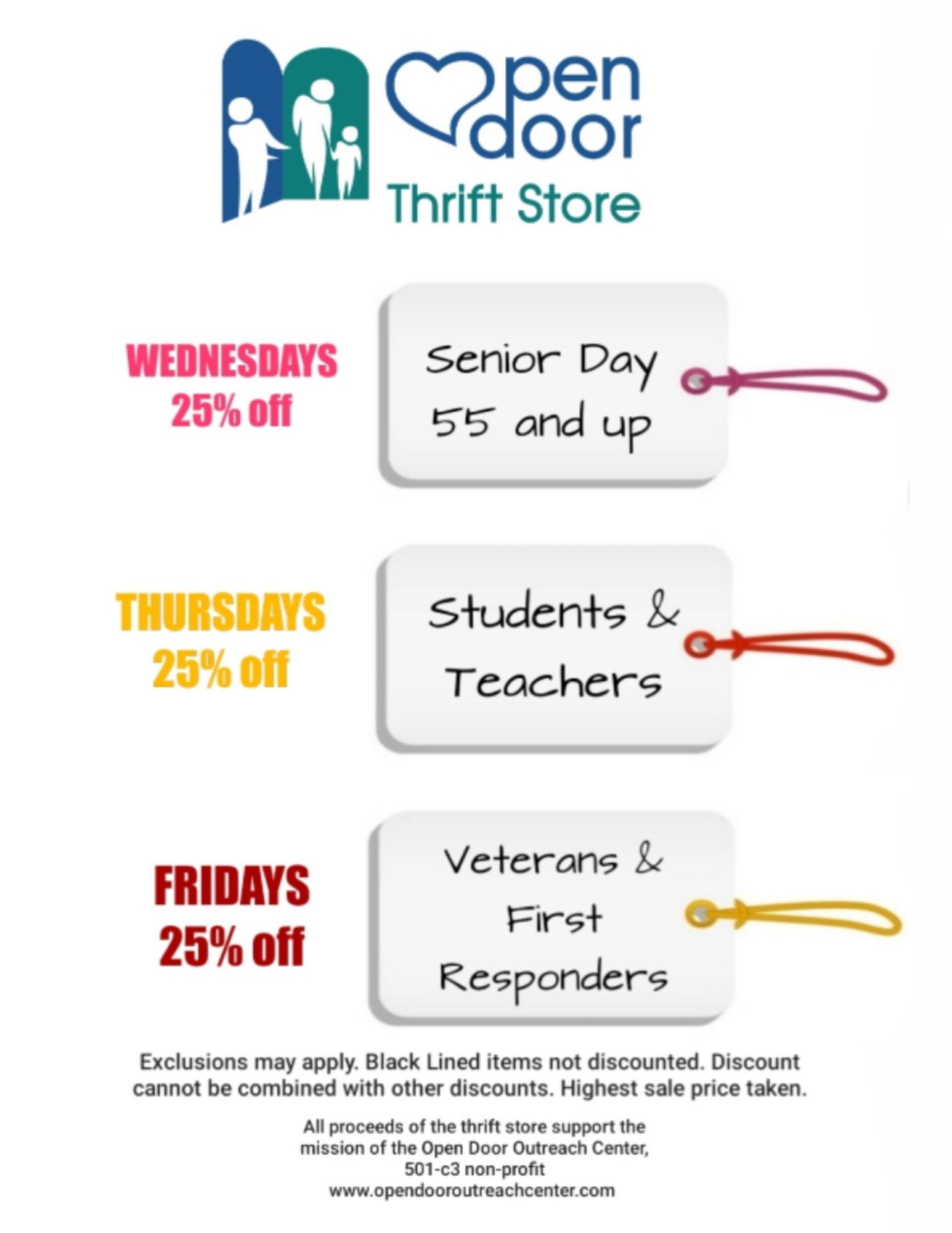 Open Door Thrift Store is a non-profit 501(c) 3 mission of the OPEN